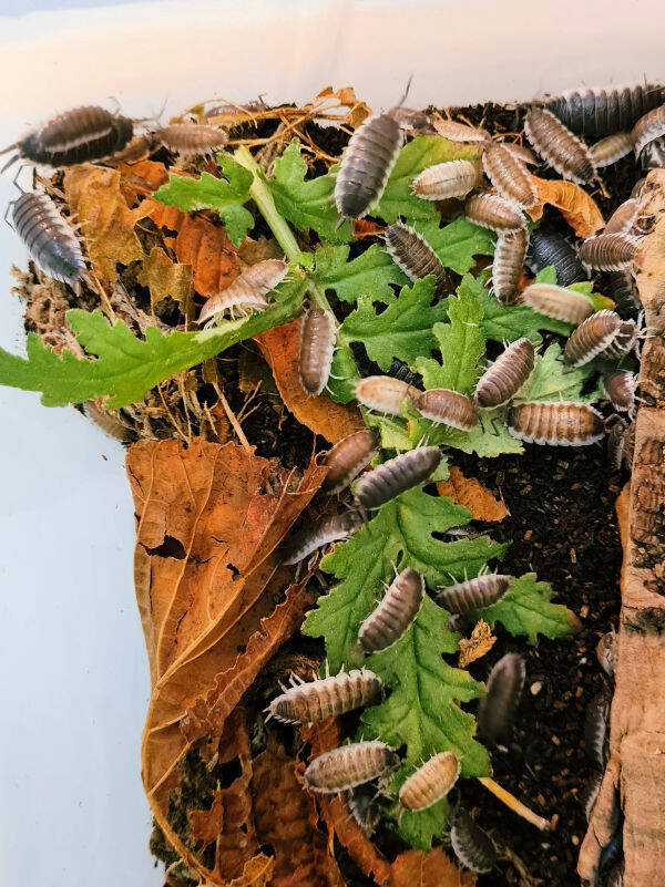 Vanwege het hoge kalkgehalte heb ik het, als proef, in eerste instantie aan mijn groep Armadillidium vulgare ‘magic potion’ gevoerd (vers geplukte, groene bladeren). Binnen een kwartier zaten ze er met zijn allen bovenop en was het in een mum verdwenen. Dit een paar keer herhaald en ik vond geen dode pissebedden. Voor de duidelijkheid: deze groep A. vulgare 'magic potion' is speciaal voor "experimenten en van deze dieren worden geen dieren verkocht.