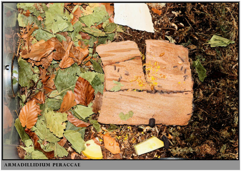 Deze soort eet goed van het plantaardig materiaal dat in substraat zit, maar ook zo nu en dan wat groente of fruit. Ook bananenschil vinden ze lekker.